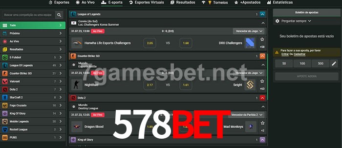 O 578bet oferece uma grande seleção de opções de apostas em e-sports com probabilidades competitivas